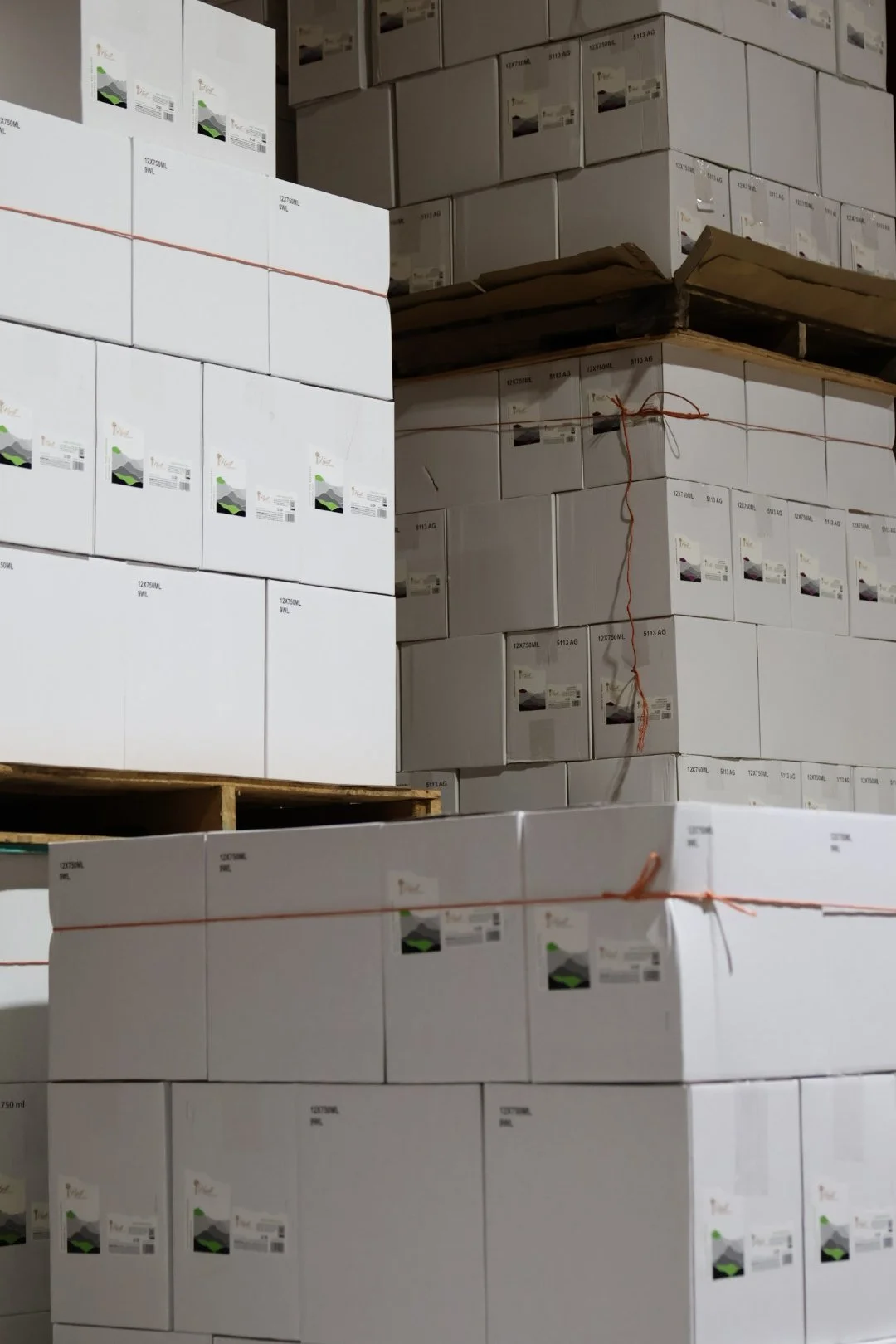 Organized pallet storage with inventory tracking and order staging to keep finished wine ready for efficient fulfillment and shipment.